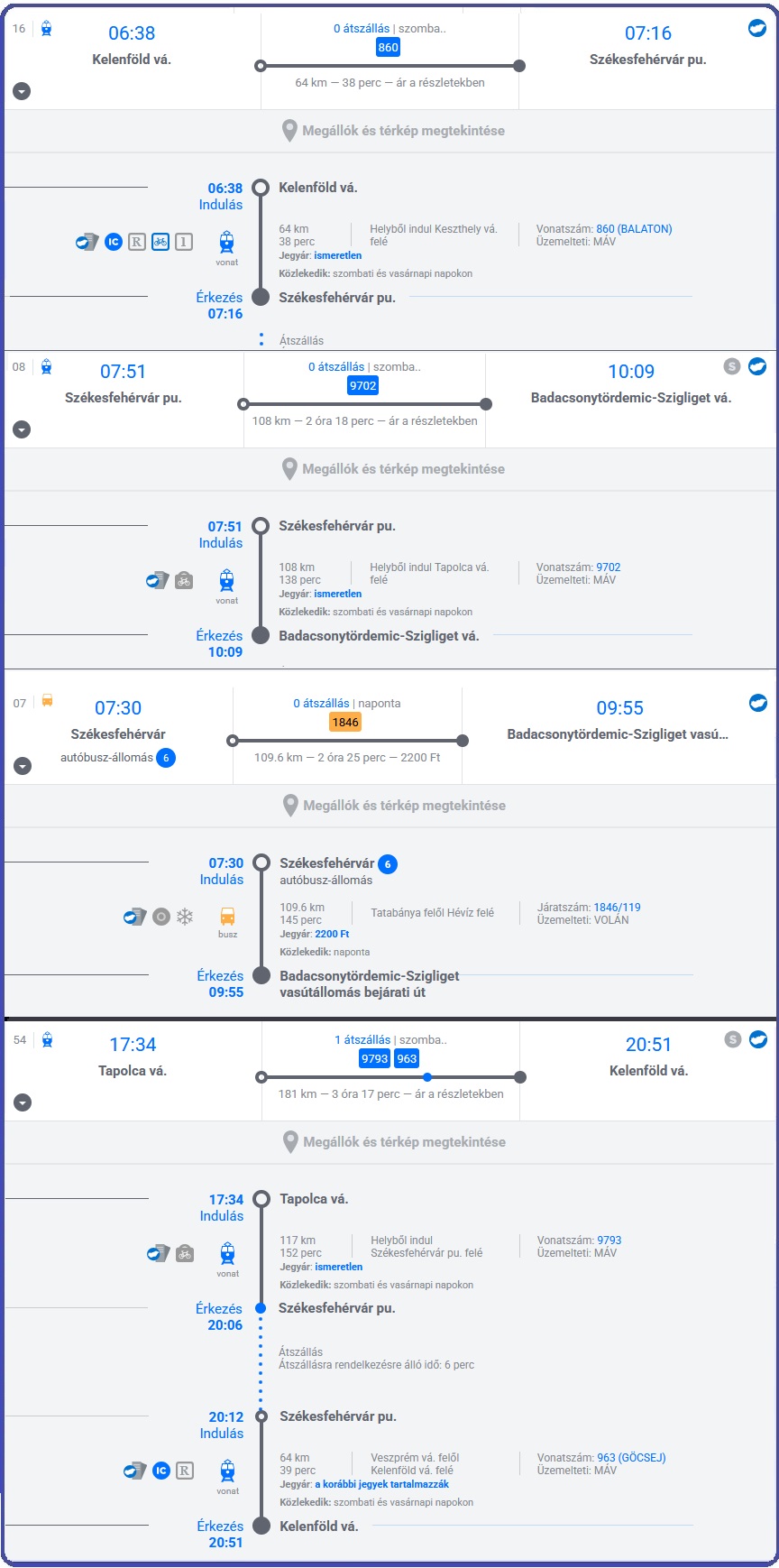 órakor indul székesfehérvári 07:51 óra átszállással és 10:09 órára ér
